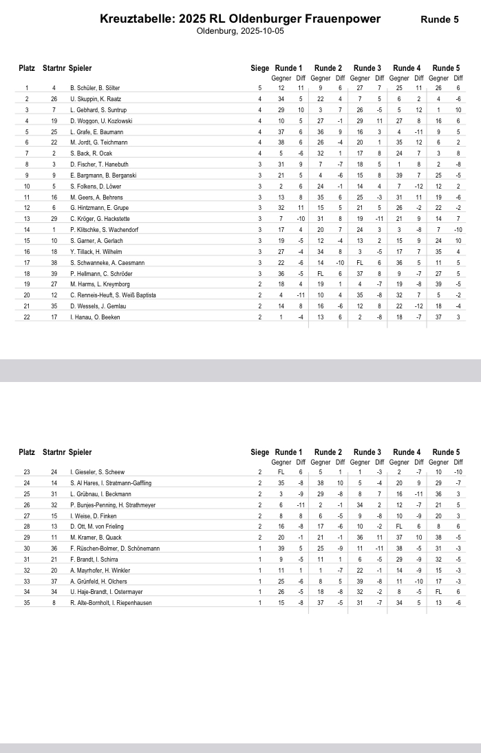 Siegerin wurden am Ende mit 5 gewonnen Spielen B. Schüler und       B. Sölter.